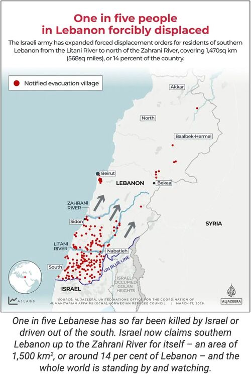 To understand the situation, one really ought to listen to Israeli politicians. Israeli Defence Minister Israel Katz recently declared on Easter Sunday that Israel would occupy the entire Lebanese territory south of the Litani River. All villages in the area along the border with northern Israel would be “completely razed to the ground”, according to Katz. Rafah and Beit Hanoun in Gaza would serve as models. The area would become a “buffer zone” and no Lebanese person would be allowed to return to this part of Lebanon.10 This would affect more than 600,000 people whom Israel has been driving out and displacing since the beginning of March with nearly 400 attacks.11