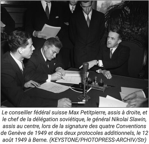 La voie est donc libre pour la reprise, fort timide, des relations commerciales, et plus intense, des relations diplomatiques. En 1954, en pleine guerre froide, la Suisse accueillera à Genève les négociations sur la Corée et l’Indochine qui aboutiront aux Accords de Genève, et en 1955 le Sommet des quatre Grands entre Eisenhower, Khrouchtchev, Anthony Eden et Edgar Faure, dégageant la route pour le développement de ce qui allait devenir la Genève internationale et le rôle de médiateur que nous avons connu jusqu’en 2022.